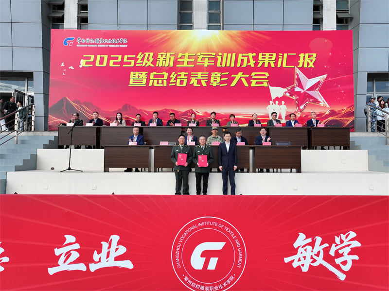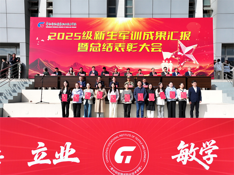 秋高气爽,军歌嘹亮。10月25日上午,常州纺织服装职业技术学院2025级新生军训成果汇报暨总结表彰大会在学校田径场隆重举行。中国人民解放军95469部队中校参谋纪兴龙,学校党委副书记、校长洪霄,党委副书记王顺明,党委委员、副校长张文明,党委委员、组织部部长高江荣等领导出席大会。全体军训教官、各职能部门负责人、二级学院党总支书记、班主任、辅导员以及2025级全体新生共同参加了这一盛典。大会由学校党委委员、宣传部部长夏斌主持。