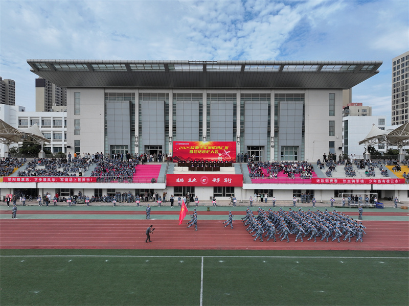 最后,洪霄在讲话中强调,军训锤炼的不仅是体魄,更是遇难不畏难的坚韧、遇挫不言弃的执着、遵规守纪的自觉和互帮互助的温情。他指出,这些在军训中沉淀下来的宝贵品质,是比任何技能都更为珍贵的财富,必将为学子们未来的航程注入源源动力。洪霄希望2025级全体同学将军训成果转化为砥砺前行的内在力量,以“请党放心,强国有我”的青春誓言,“砥砺前行,不负韶华”的坚定决心,在未来三年的大学生活中乘风破浪,前程似锦。