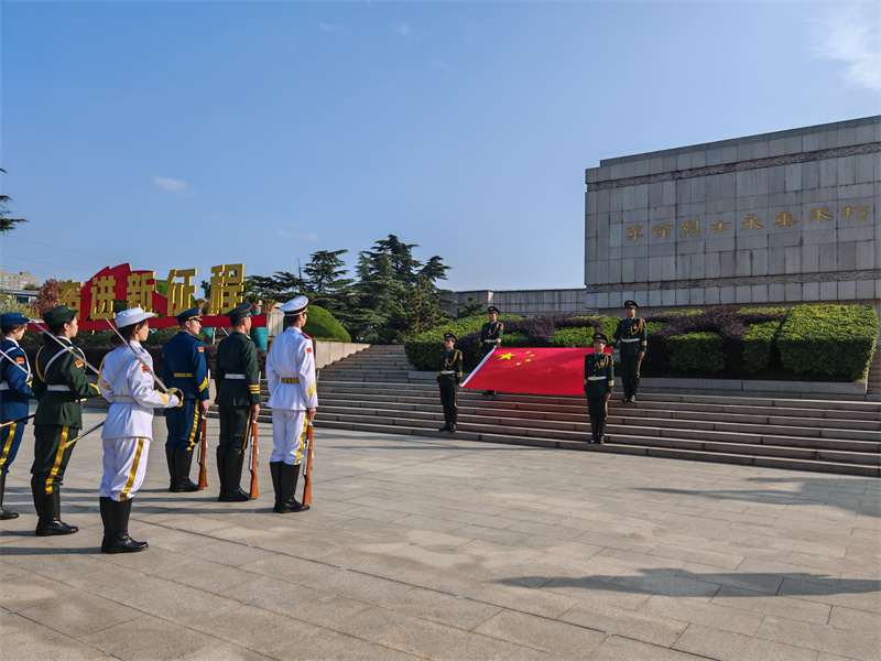 上午9时,祭扫活动在庄严肃穆的氛围中正式开始。在巍然矗立的革命烈士纪念碑前,全体队员列队肃立。伴随着铿锵有力的口令,国旗护卫队队员踏着整齐划一、沉稳有力的正步,护送国旗至纪念碑前指定位置。随后,全场高唱中华人民共和国国歌,激昂的旋律在陵园上空回荡,表达了对抗战先烈和死难同胞的深切缅怀以及对伟大祖国的无限忠诚。