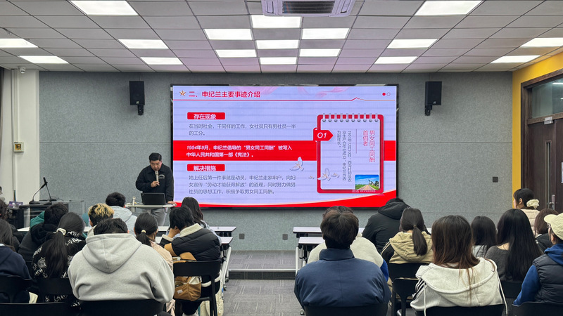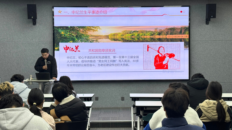 课堂上,朱文彬老师娓娓道来、层层深入,以申纪兰先进事迹为学习标杆,带领同学们深入了解其推动“男女同工同酬”入宪、扎根基层带领西沟村创业转型的奋斗历程,让同学们真切体悟爱岗敬业、艰苦奋斗的劳模精神与扎根大地的实干品格;围绕乡村振兴主题,朱老师清晰拆解产业为基、文化为魂的发展要义,引导同学们找准青年成长与时代发展的结合点;讲堂还深挖常州本土红色资源,带领同学们走近“常州三杰”、新四军江南指挥部等红色地标,解读红色文创设计、红色旅游开发赋能乡村振兴的实践路径,让同学们在沉浸式学习中接受红色文化熏陶,深刻理解红色基因对乡村发展的重要意义。
