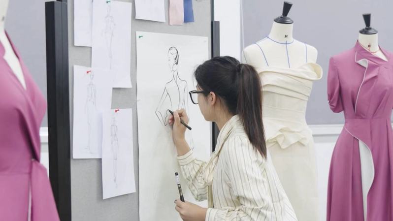 机会总是垂青有准备的人。2024年10月,她通过努力加入世界职业院校技能大赛的备赛中,从接到参赛通知到比赛结束,仅有短暂的20天时间。在赛项准备阶段,为了呈现服装设计师的必备技能手绘,她需要在2K大小的纸张上绘制服装效果图,当时人体比例、五官和四肢都是她的拦路虎,每天训练到12点几乎无休息的状态,身体的疲惫对她已经不算什么,更多的是沉浸思索和消化今天学习的知识。这其中更离不开老师们对她的帮助与鼓励。最终团队收获2024年世界职业院校技能大赛总决赛争夺赛高职组轻工纺织赛道二“服装创意设计与工艺”赛项金奖。大赛锻炼了她身心,丰富了她实践经验,她意识自己在专业技能上还需要不断提高。她将继续保持热爱,奔赴下一场山海,探索东方之美。