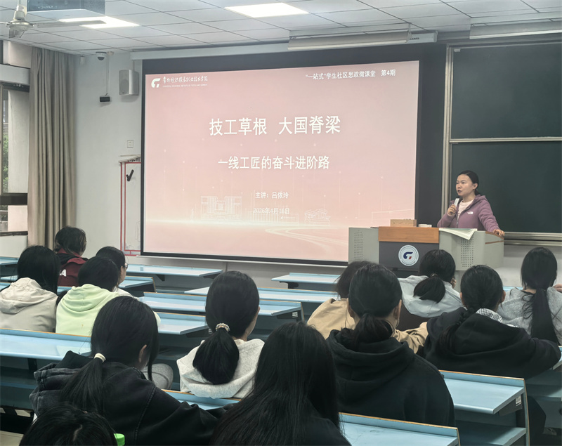 4月16日,学校“一站式”学生社区思政微课堂第四期在5209举行。本期微课堂以“技工草根·大国脊梁:一线工匠的奋斗进阶路”为主题,由智能制造学院吕依玲老师主讲,通过讲述多位技工出身大国工匠的成长故事,引导学生感悟“平凡岗位炼绝活”的奋斗密码,树立“行行出状元”的职业观,以技能报国践行使命担当。