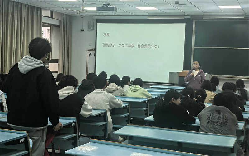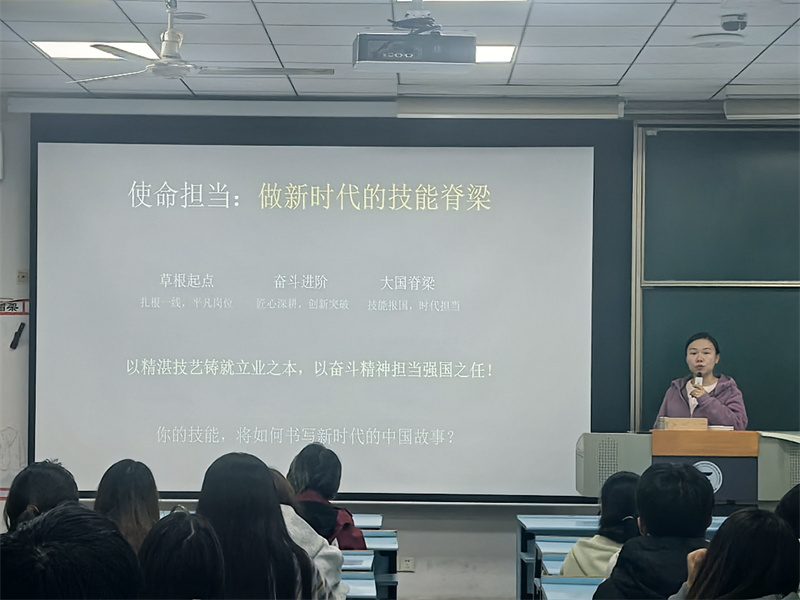 讲座中,吕依玲老师以“起点低是否意味着终点低?”的设问切入,结合中国工程物理研究院高级技师陈行行等四位大国工匠的真实经历,展开了一场关于“草根逆袭”的深度解读。“他们的起点或许平凡,但‘匠心深耕+创新突破’让他们站上了行业的巅峰。”吕老师总结道。她和同学们一起从“草根工匠”的故事中提炼出三大“奋斗密码”:一是“把喜欢的事修炼成本事”的热爱与坚持;二是“把小事做到极致”的专注与精进;三是“把个人梦融入家国梦”的担当与格局。